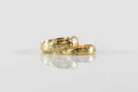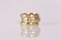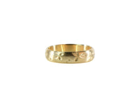 14k gold wide stacking band with hand-carved KH Petal Print details.